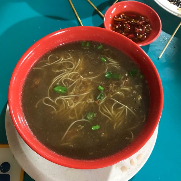 Bedok North Blk 538 Food Centre. This was originally a soupy dish consisting of minced pork in broth served with mee. Featured in Tastemakers Guide To Best Supper Spots in Singapore.
